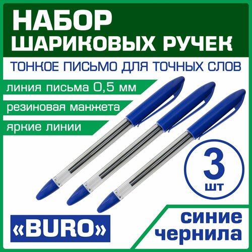 Набор шариковых ручек Buro, 5 штук, синие чернила, толщина линии 0,5 мм
