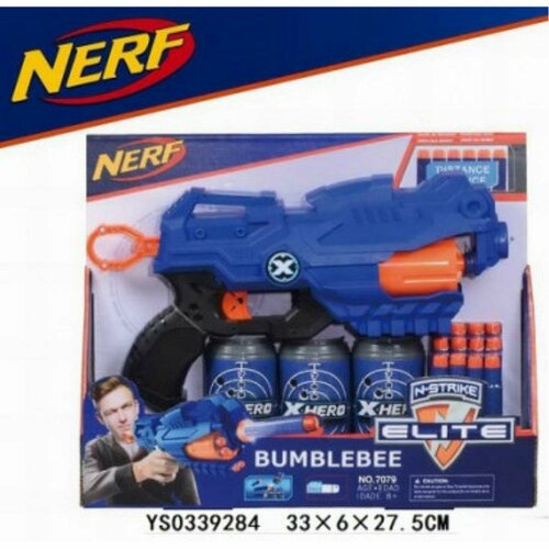 Бластер Нёрф с мягкими пулями и 3 банки-мишень в кор. 33х6х27.5см