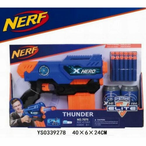 Бластер Нёрф THUNDER с мягкими пулями и 2 банки-мишень 33х6х27.5см