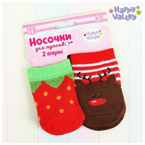 Happy Valley Носочки для пупсов «Оленёнок и клубничка» набор 2 пары