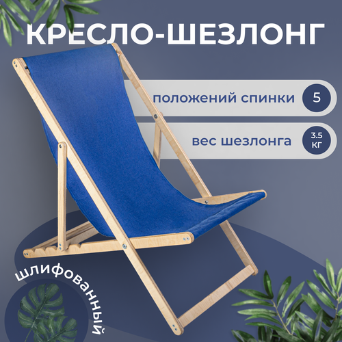 Кресло-шезлонг "Берёзка" шлифованный с синей тканью складной для дома и дачи