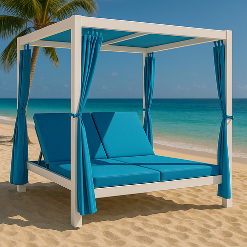 Садово-пляжный шезлонг с крышей и занавесками Tagliamento Enigma, цвет голубой