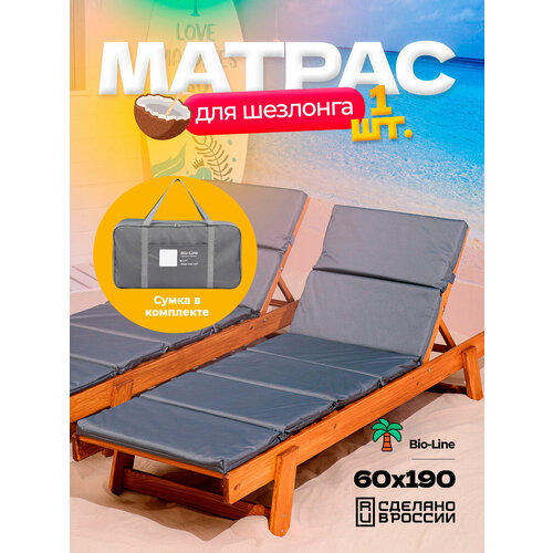 Матрас для шезлонга 60х190 см в сумке пляжной, водонепроницаемый, на резинке, оксфорд 600d, серый