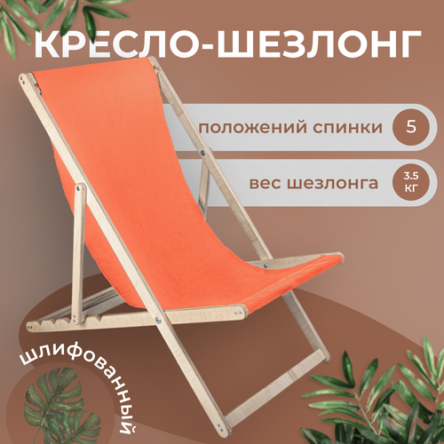 Кресло-шезлонг "Берёзка" шлифованный с оранжевой тканью складной для дома и дачи