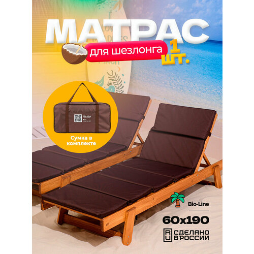 Матрас для шезлонга 60х190 см и сумка пляжная, водонепроницаемый, на резинке, оксфорд 600d, шоколад