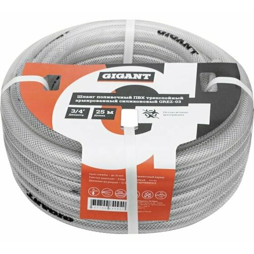 Gigant Шланг поливочный ПВХ трёхслойный армированный силиконовый 3/4, 25м GREZ-03