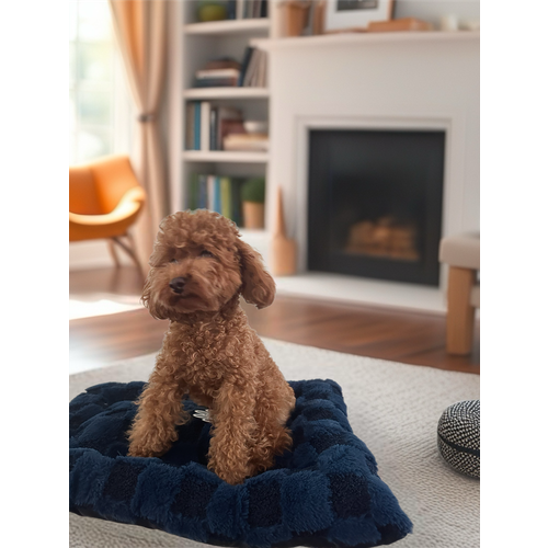 Лежанка для собак и кошек, размер L 60х42, синяя, с узором в клеточку (прочное нескользящее дно) Без бренда