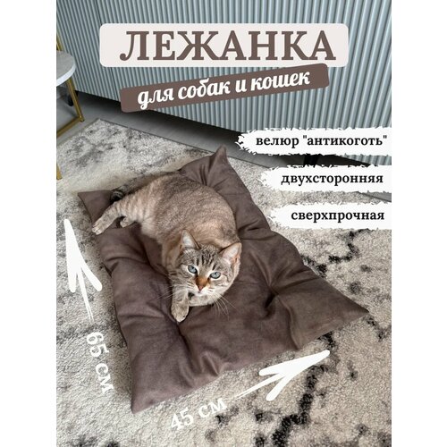 Лежанка 65х45 для собак и кошек велюр антикоготь Без бренда