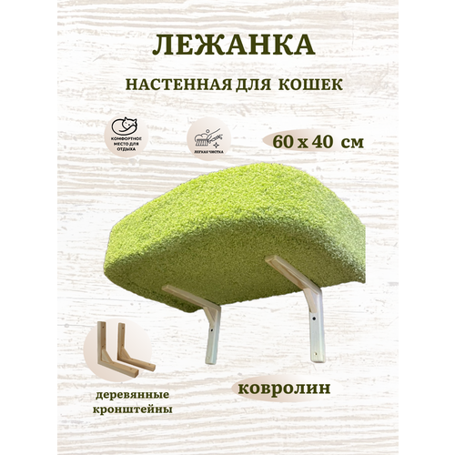 Лежанка для кошек, Ван Кот, настенная, с бортиком, темно-серый ковролин, 60х40 см Без бренда