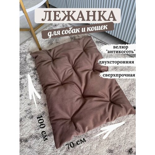 Лежак, матрасик 100x70 большая для собак и кошек велюр, антикоготь Без бренда