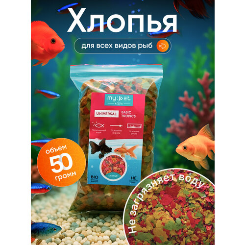 Основной корм для всех видов акварумных рыб , My Pet "Universal Basic", хлопья, 50г
