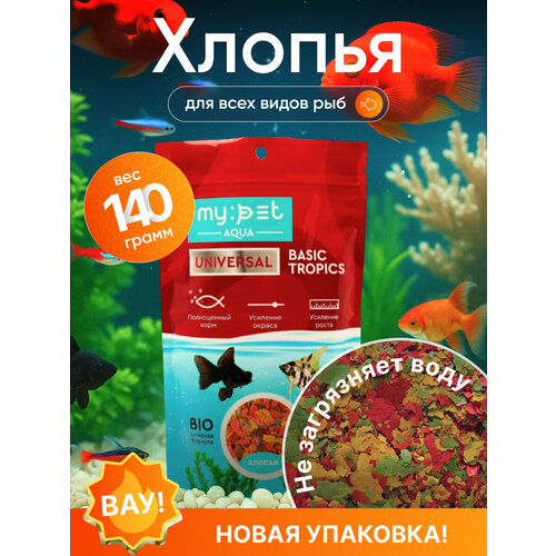 Основной корм для всех видов акварумных рыб , My Pet "Universal Basic", хлопья, 140г