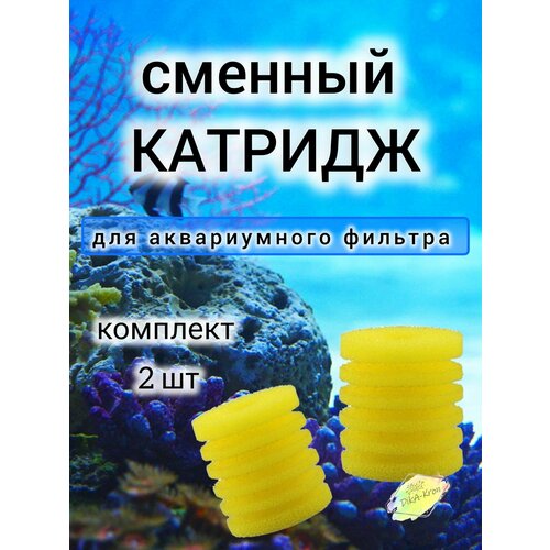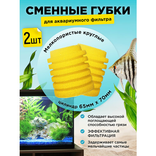 Сменные мелкопористые круглые губки для аквариумного фильтра 2шт для BARBUS, SOBO, FERONIA и др. 65х70мм цилиндр, желтые