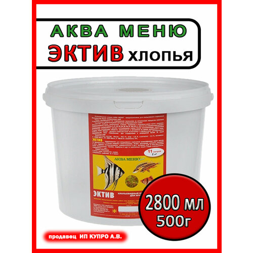 Сухой корм для аквариумных рыб эктив хлопья, 500грамм 2,800мл Aquamenu
