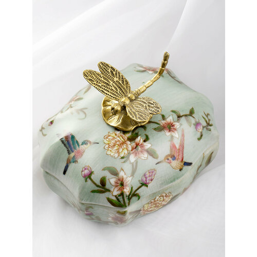 Шкатулка Glasar со стрекозой 9х9х12 см , фарфор и бронза