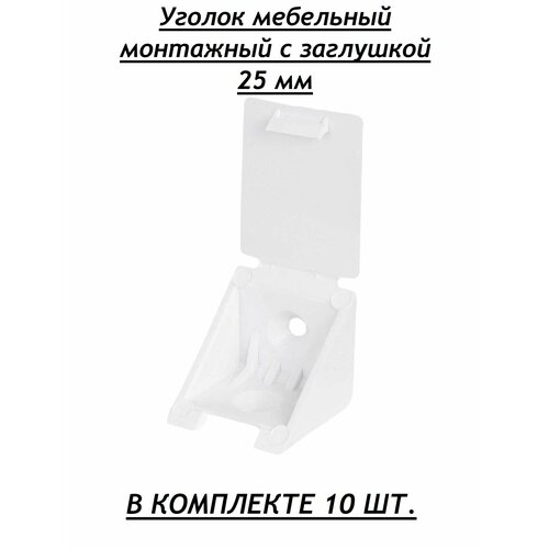 Уголок монтажный мебельный с заглушкой 25 мм, пластик, цвет белый, в комплекте 10 шт.