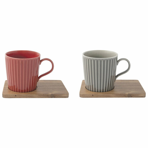 Набор кружек на подставке Easy Life Время отдыха 380 мл, 2 шт, фарфор твердый, дерево, красная, сера