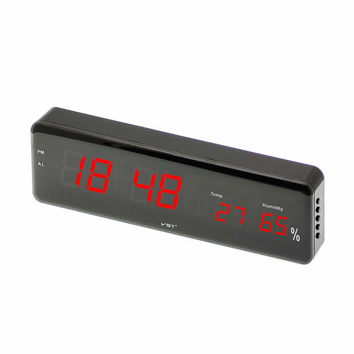 Часы настенные электронные цифровые c термометром и гигрометром цифры красные