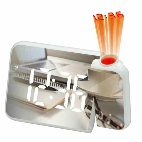 Часы настольные проекционные (будильник, температура, дата) OT-CLT08белый Орбита