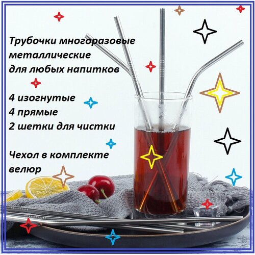 Трубочки металлические для напитков и коктейлей многоразовые.