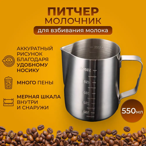 Питчер для молока 550 мл / Кувшин металлический / Кружка мерная