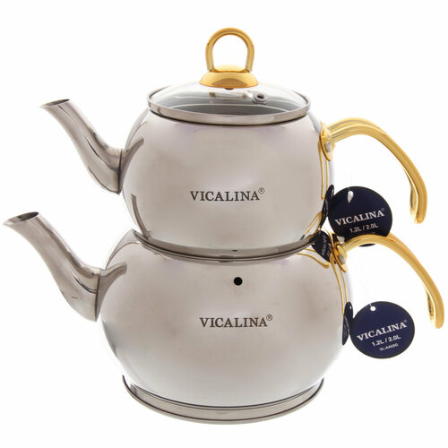 Чайник двойной турецкий 1,2+2л "Vicalina" серебрянный VL-AA02G