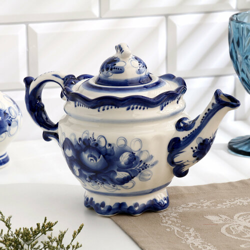 Чайник, гжель, фарфор, автор Рогова, 18х24 см