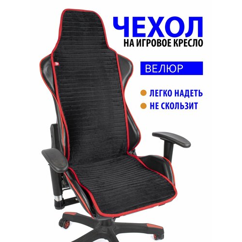Чехол (накидка) для компьютерного игрового кресла черный с красным кантом