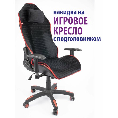 Чехол (накидка) с подголовьем для компьютерного игрового кресла черный с красным кантом