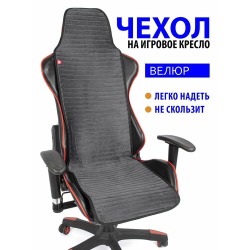 серый, красныйВелюровый чехол защищает обивку офисных и игровых кресел от повреждений. А старым и потертым креслам или компьютерным стульям со спинкой дает вторую жизнь, скрывая потертости или разрывы. Материал устойчив к механическим воздействиям, хорошо тянется, принимая форму компьютерного кресла или игрового стула. Накидка закрывает только сиденье и спинку, а подлокотники остаются открытыми. Тканевый чехол не лоснится и не протирается даже при длительной эксплуатации.