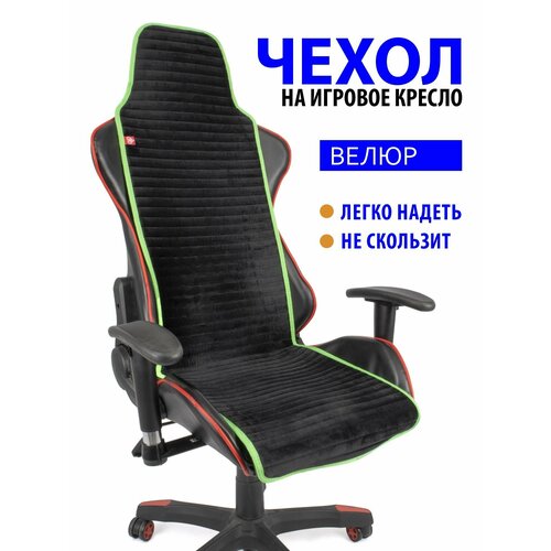 Чехол (накидка) Slim Stripe для компьютерного игрового кресла черный с зеленым кантом