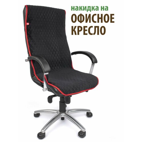 Чехол (накидка) для компьютерного офисного кресла Ромб черный с красным кантом