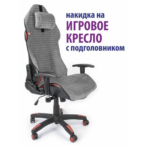 Чехол (накидка) с подголовьем для компьютерного игрового кресла темно-серый