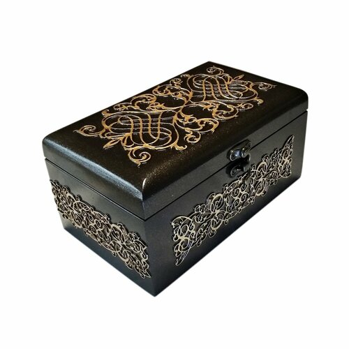 Большая черная шкатулка для украшений (22х17х10см) Ручная работа UNIRU