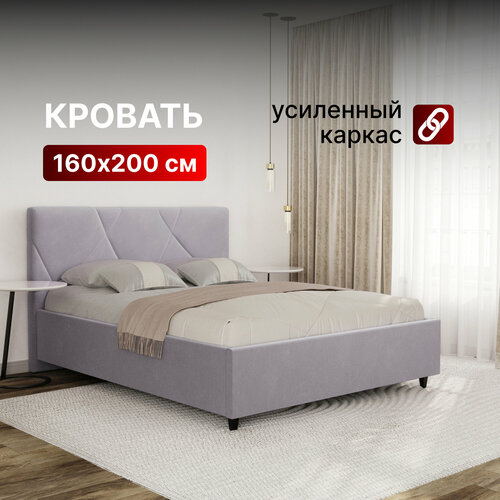 Кровать 160х200 с подъемным механизмом двуспальная Амбер с ортопедическим основанием и ящиком для белья, мягкое изголовье, для спальни и дома, велюр лиловый