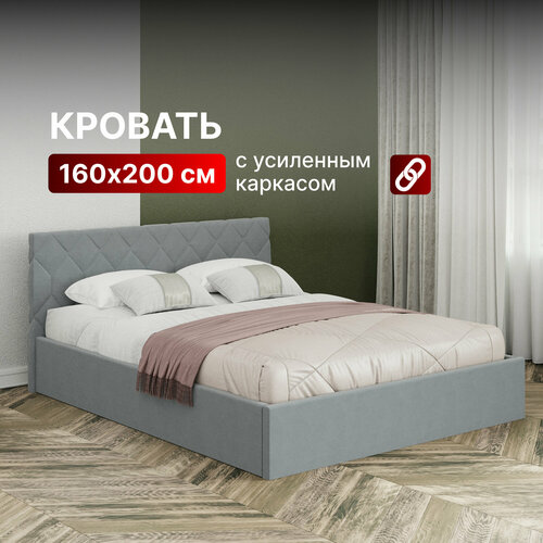 Кровать 160х200 подъемный механизм двуспальная Джоли с ортопедическим основанием и ящик для белья, велюр светло-серый
