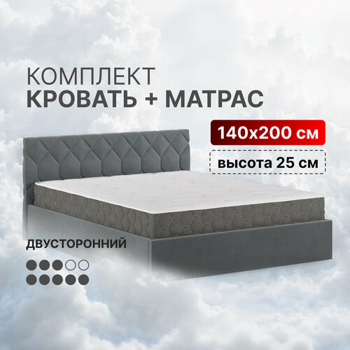 Кровать с матрасом высотой 25см, кровать 140х200 c подъемным механизмом и бельевым ящиком Техас темно-серый