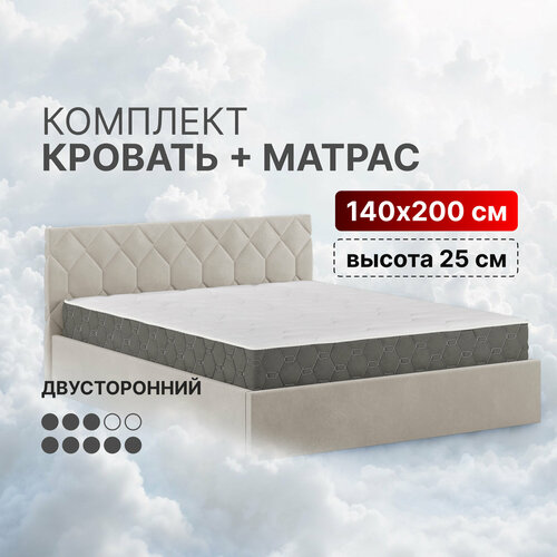 Кровать с матрасом высотой 25см, кровать 140х200 c подъемным механизмом и местом для хранения Техас светло-бежевый