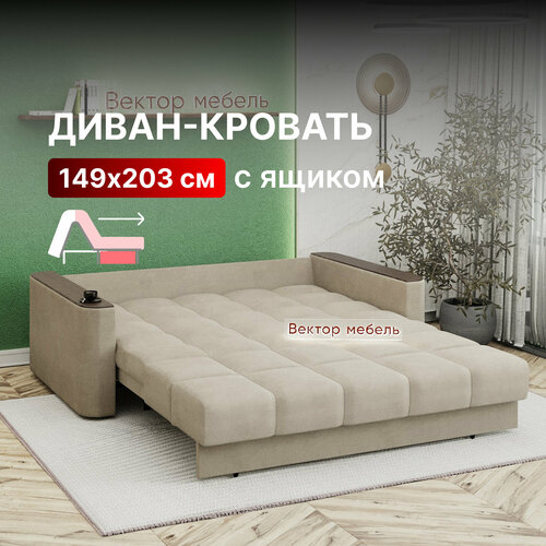 Диван-кровать раскладной с ящиком Прямой на металлокаркасе, Аккордеон, ортопедический, 149х203, Валенсия, велюр
