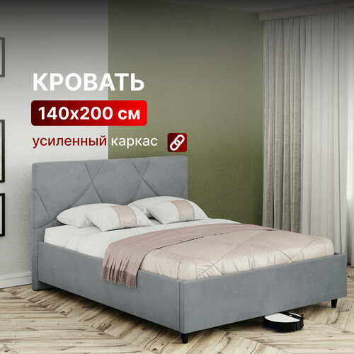 Кровать 140х200 с подъемным механизмом двуспальная Амбер ортопедическое основание и ящик для белья, велюр светло-серый