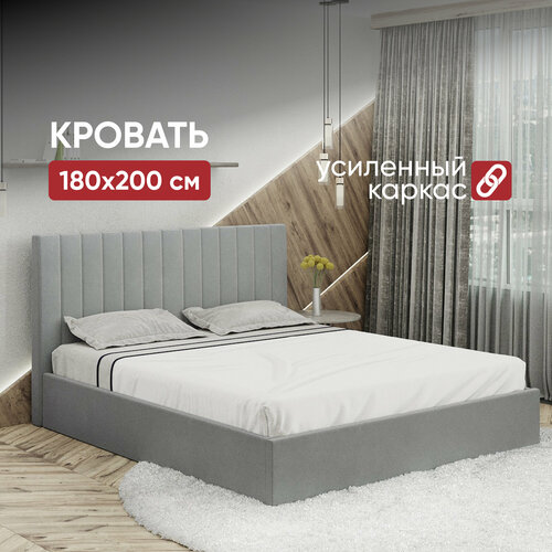 Кровать 180х200 c подъемным механизмом двуспальная Джоли ортопедическое основание и ящик для белья, велюр светло-серый