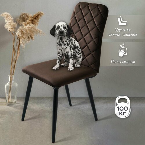 Стул Ричи мягкий со спинкой, обеденный для кухни, гостиной, ножки дерево, вельвет, шоколадный, Ами Мебель, Беларусь