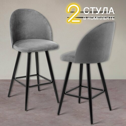 Барные стулья для кухни 2 штуки мягкие Босс, кухонные стулья со спинкой, обивка вельвет темно-серый, АМИ мебель Беларусь