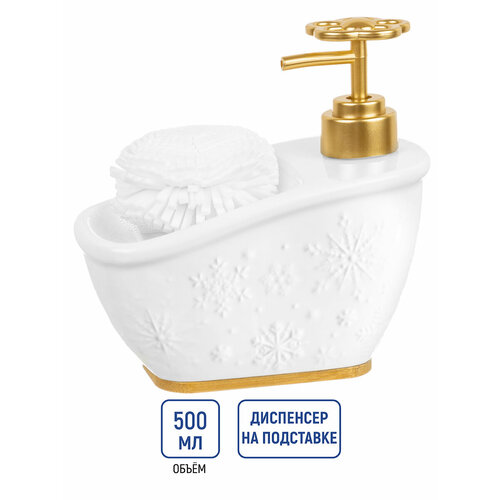 Диспенсер 500 мл 15,5х8,5х15,5 см Elan Gallery Снежинки, с губкой, на деревянной подставке