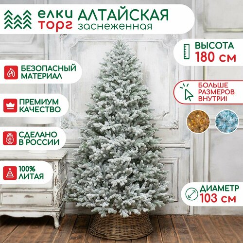 Новогодняя искусственная елка Алтайская заснеженная 180 см, 100% литая хвоя, ЕлкиТорг (169180)