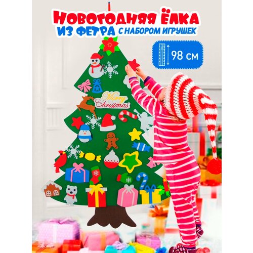 Елка новогодняя из фетра в комплекте с игрушками, 98 см
