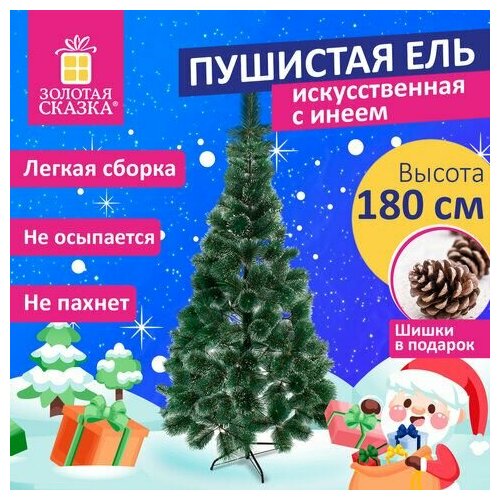 Ель новогодняя искусственная "Пышная" 180 см, с инеем и шишками, зеленая, золотая сказка, 592051