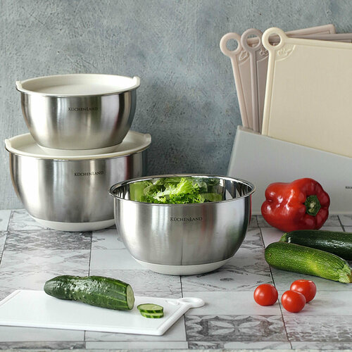 Миска, 3 шт, с крышкой, антискользящее дно, бежевая, Terra
