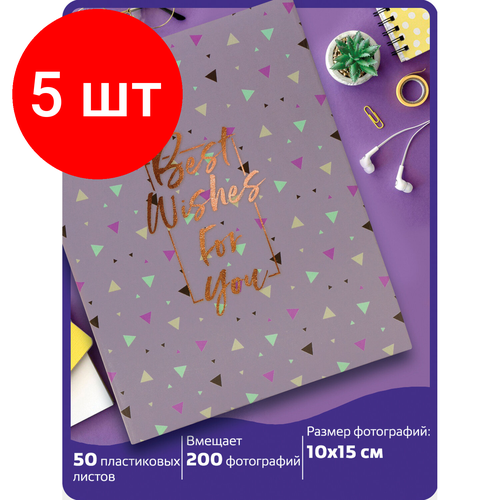 Комплект 5 шт, Фотоальбом BRAUBERG "Всего наилучшего!" на 200 фото 10х15 см, твердая обложка, термосварка, 391172
