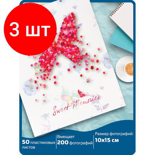 Комплект 3 шт, Фотоальбом BRAUBERG "На крыльях любви" на 200 фото 10х15 см, твердая обложка, термосварка, 391160